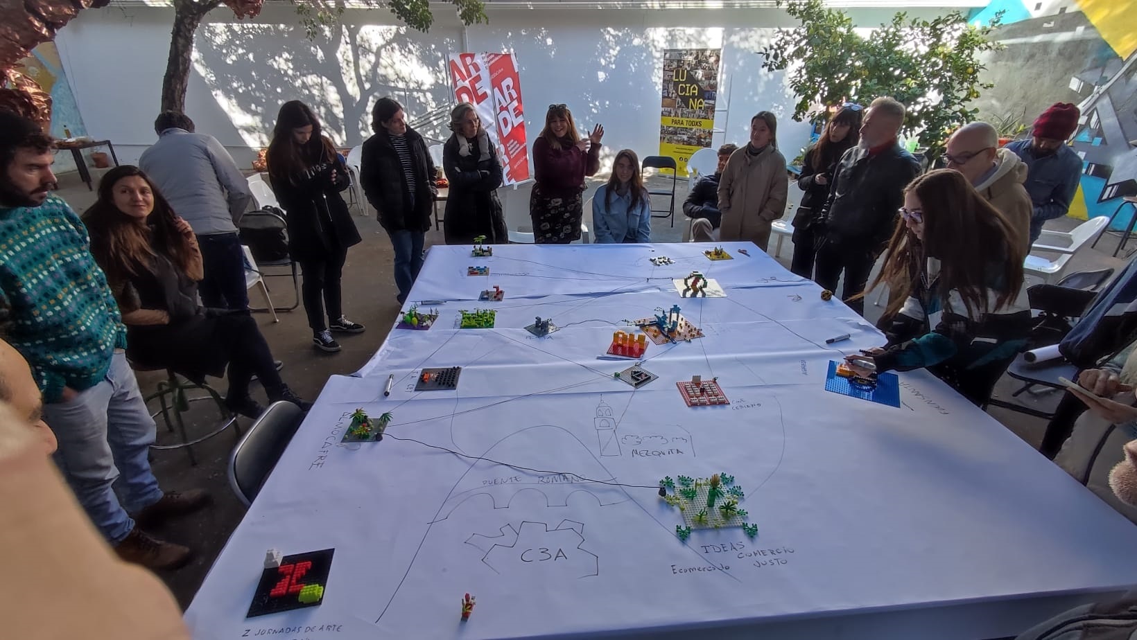 En lugar de optar por un enfoque convencional, cada colectivo se autorrepresentó a través de bloques de construcción, dando vida a un mapa tridimensional de la cultura en Córdoba. Este mapeo no solo cumplió así con su función exploratoria, sino que también se convirtió en una obra colectiva que refleja emocionalmente la identidad de cada organización. Al tejer los hilos que conectan las colaboraciones entre diversas entidades, «Entrada de incendios» intenta también capturar las interconexiones que fortalecen y nutre.